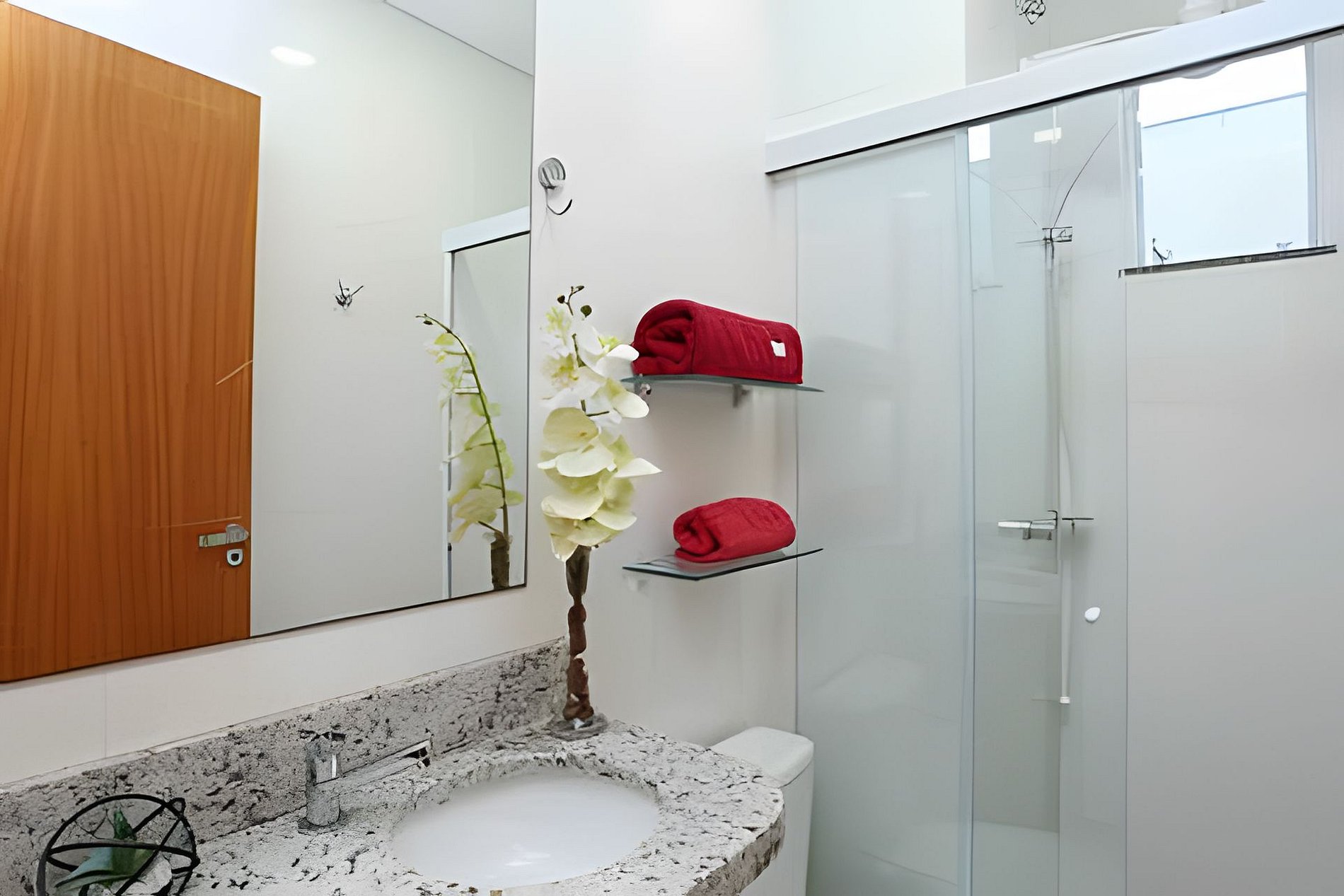 Três banheiros para sua conveniência e privacidade, tornando a estadia mais confortável e funcional.