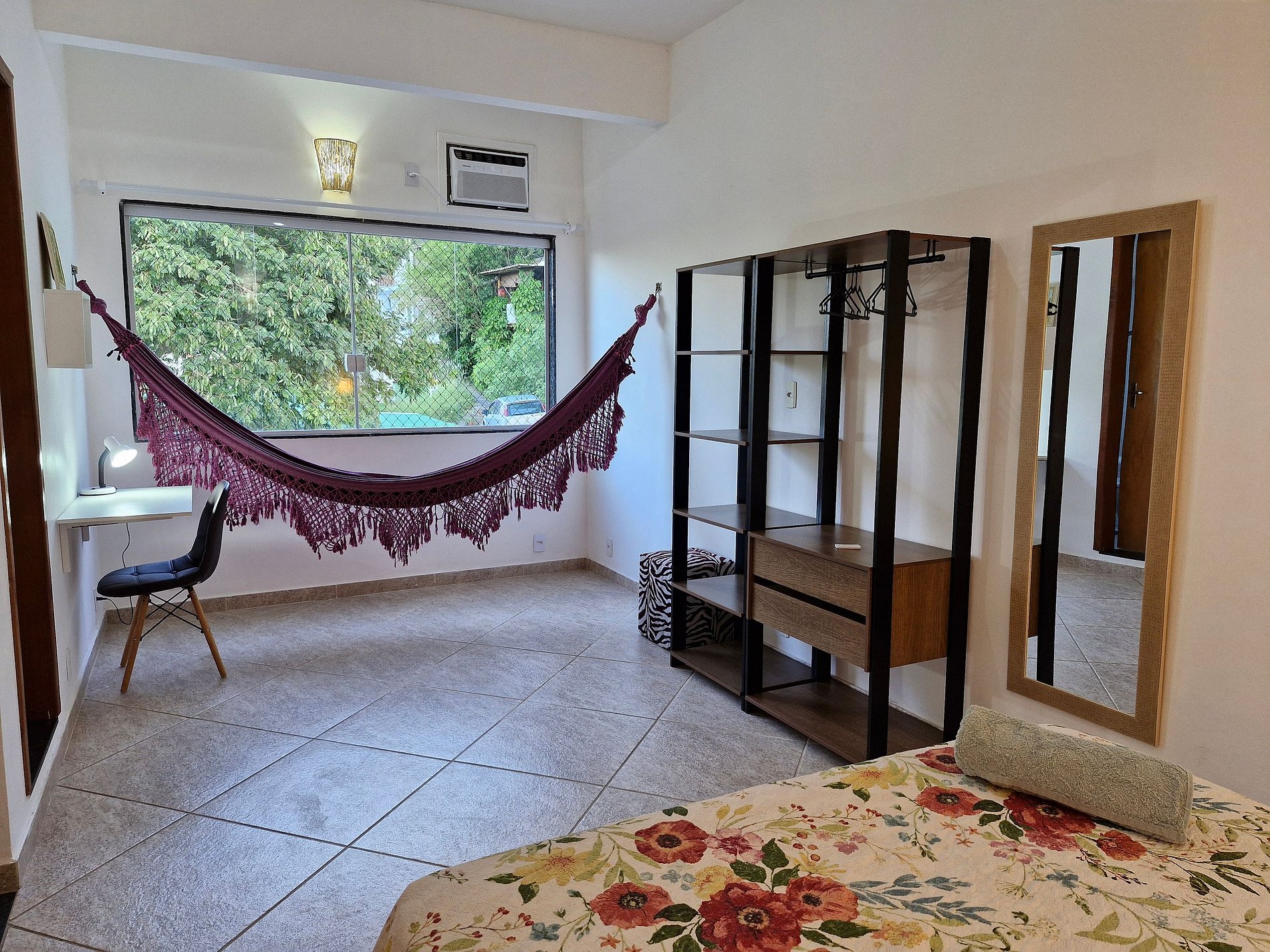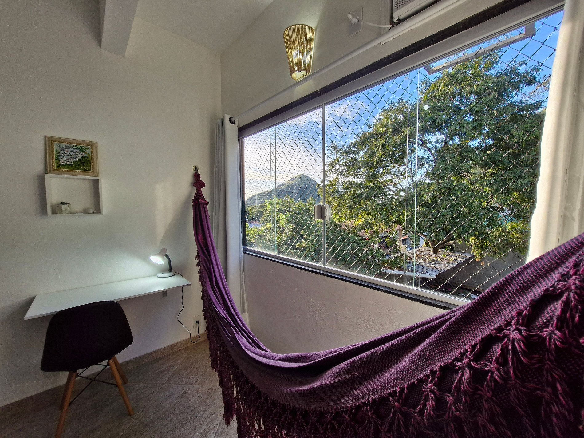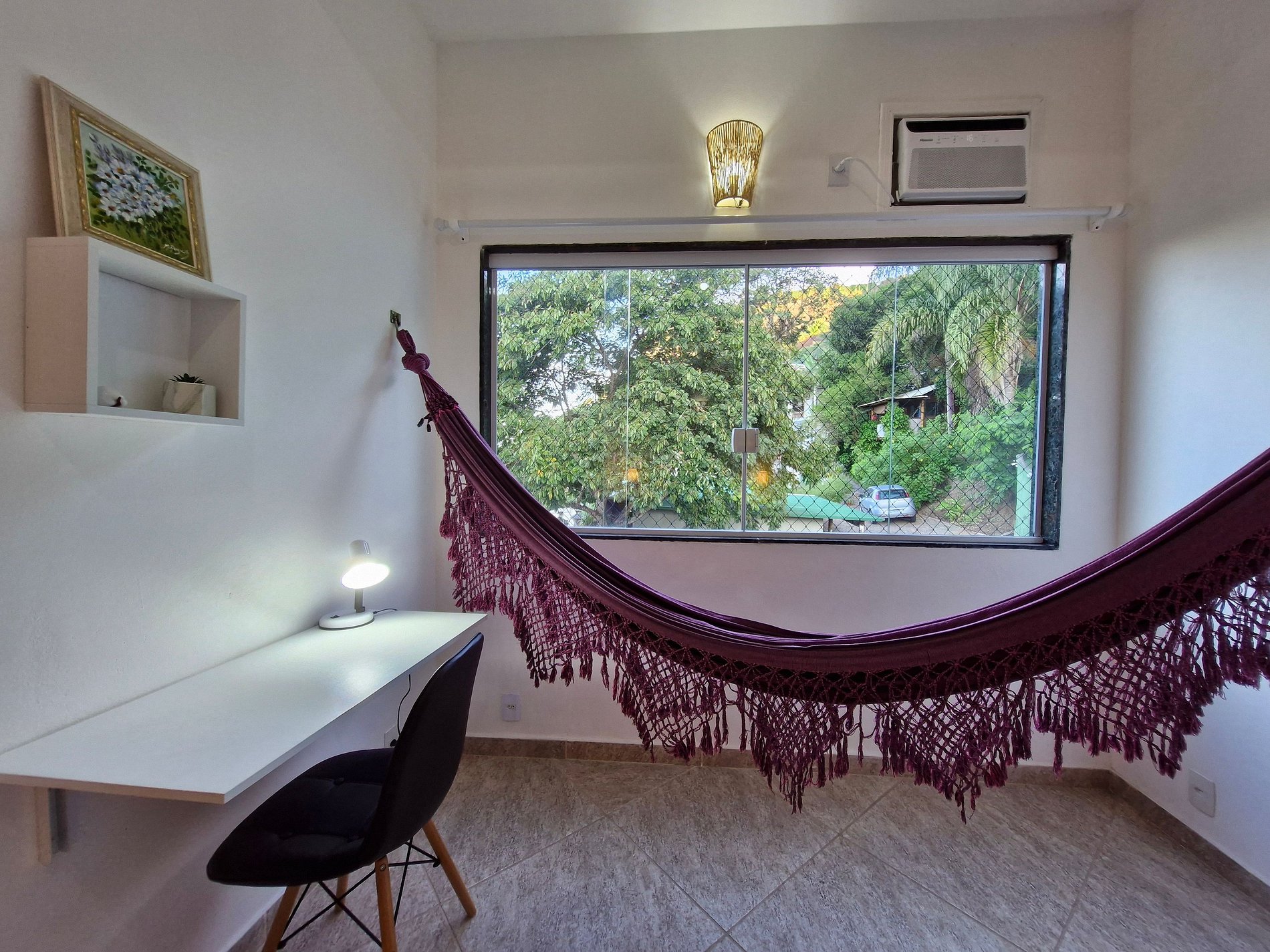 Relaxe e descanse com toda a família neste espaço cheio de estilo. Se você busca um lugar para desconectar e sair do estresse do dia a dia, esse é o lugar certo para você. Na cidade do Rio de Janeiro porém com clima de cidade do interior, rodeado por natureza, de paz e sossego. 4 hóspedes: Suíte: 1 cama de casal e ar condicionado Quarto: 2 camas de solteiro, ar condicionado e ventilador de teto) 1 sofá 2 redes para relaxar (suíte e sala) Vista para a Natureza 2 banheiros