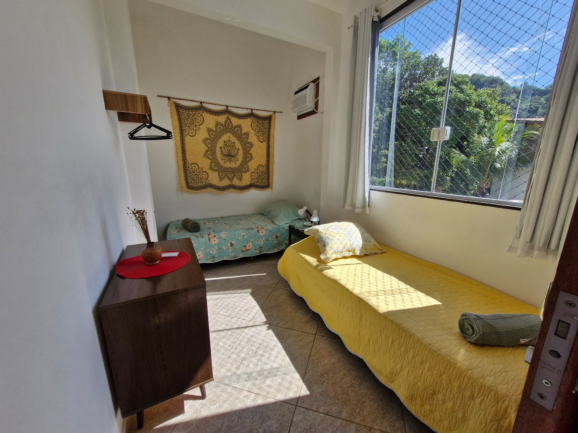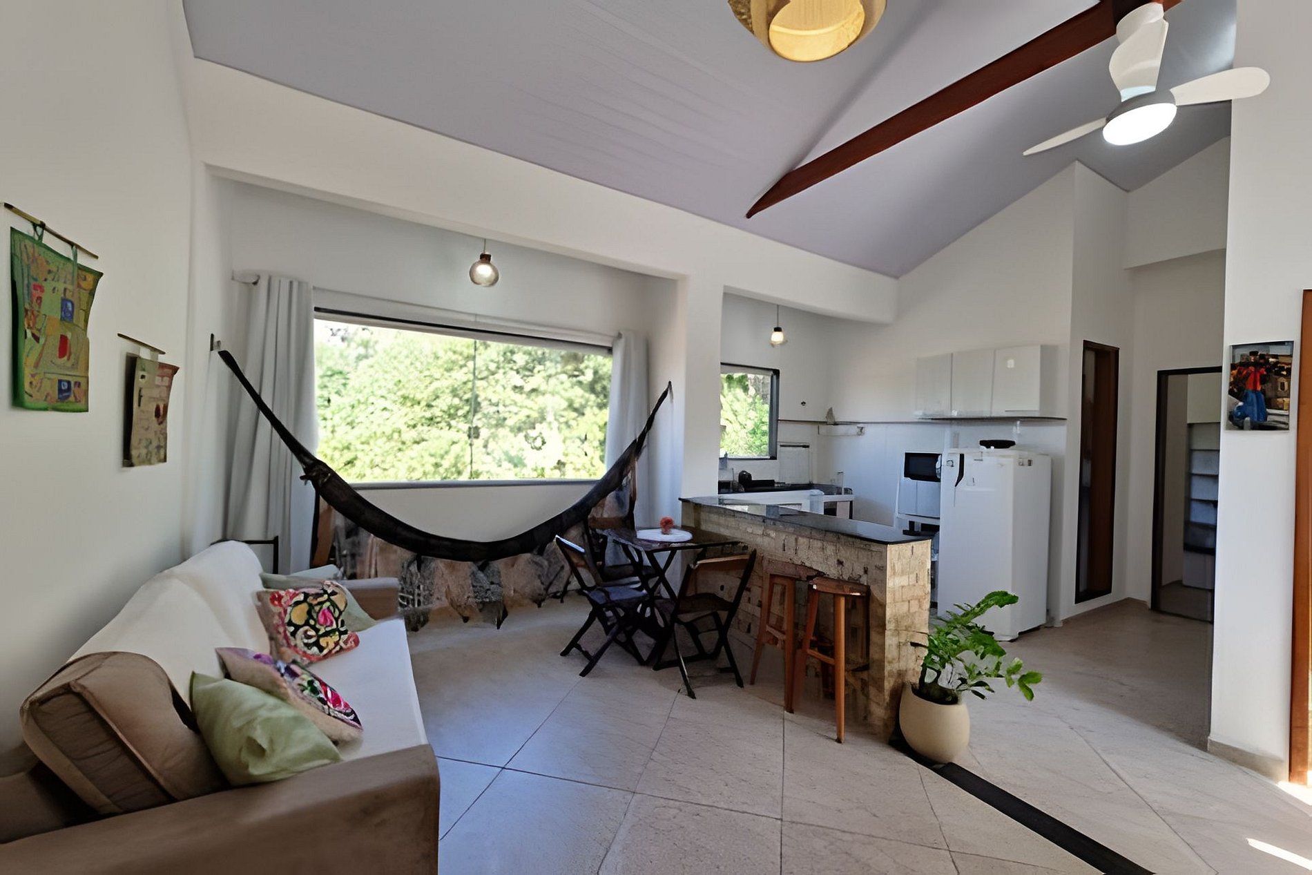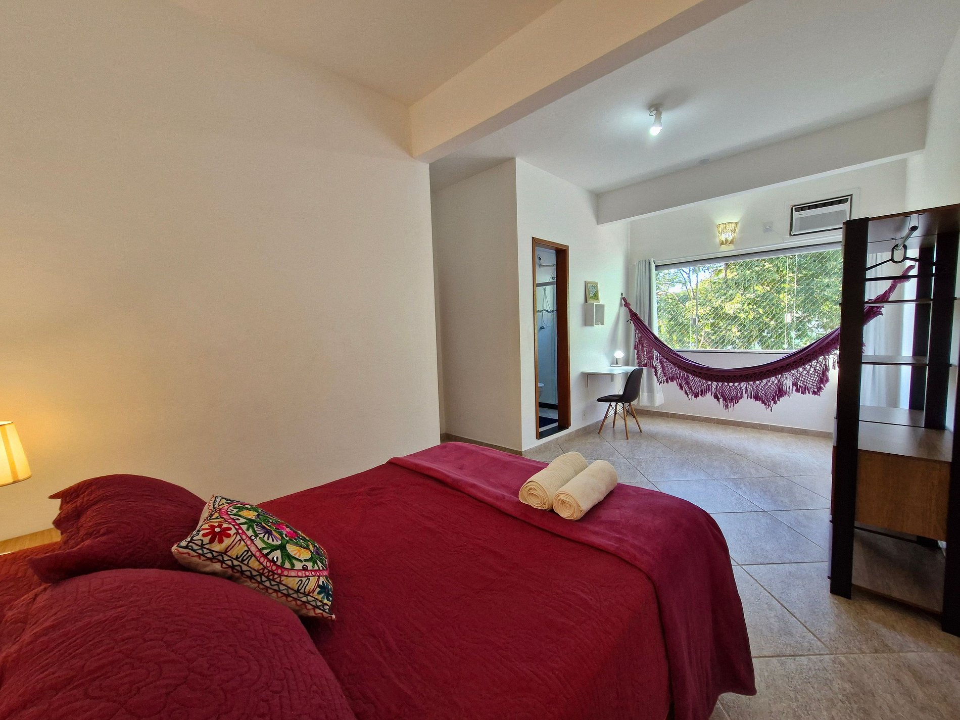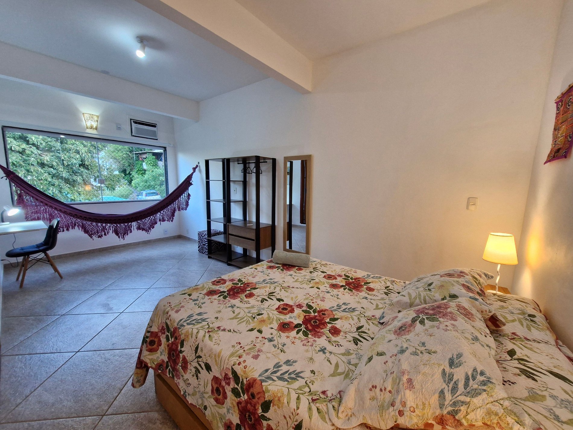 Relaxe e descanse com toda a família neste espaço cheio de estilo. Se você busca um lugar para desconectar e sair do estresse do dia a dia, esse é o lugar certo para você. Na cidade do Rio de Janeiro porém com clima de cidade do interior, rodeado por natureza, de paz e sossego. 4 hóspedes: Suíte: 1 cama de casal e ar condicionado Quarto: 2 camas de solteiro, ar condicionado e ventilador de teto) 1 sofá 2 redes para relaxar (suíte e sala) Vista para a Natureza 2 banheiros